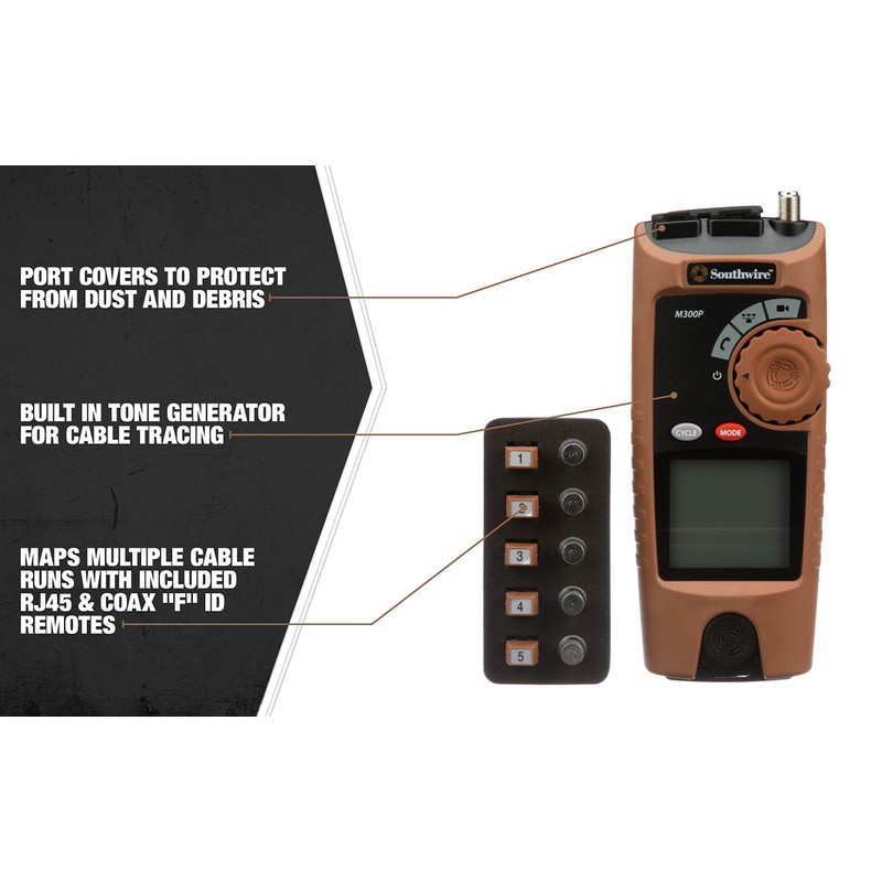Southwire M300P Professional VDV Low Voltage Cable Mapper tool kit; Network Cable Tester; Network tester for testing voice; data; and video products; Ethernet tester and RJ45 tester; Brown