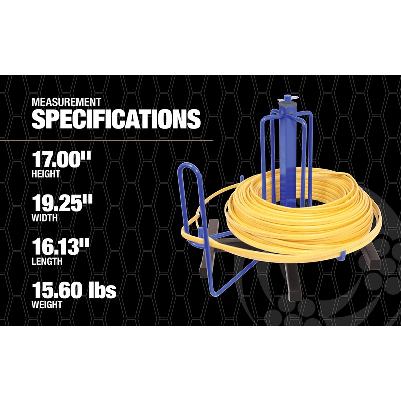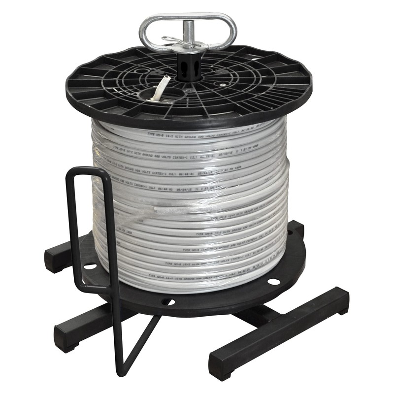 Smoothly dispenses coils of armored cable or NM-B cable. Cable dispenser comes with both floor and stud mounting brackets, and has the capacity to support 1000' reels. Its swivel eyelet prevents tangles while paying out cable. The wide base keeps the load stable. Includes 2 brackets to mount to floor or stud. Convenient carry handle now included.