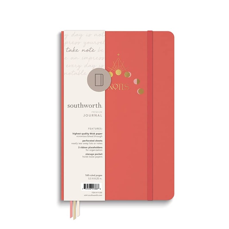 Southworth Medium Case Bound Journal, 5.5" x 8.25", Boho Mystical Pink, Premium 28 lb/105 gsm Paper, 160 Lined Sheets (91388)
