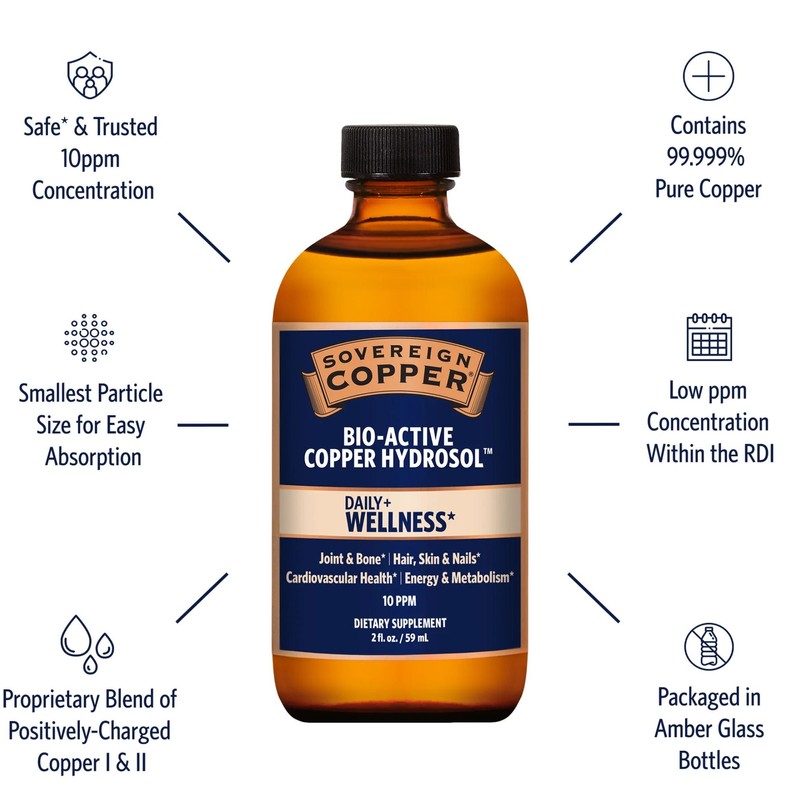 Sovereign Copper Trace Element 10 PPM, Bio Active Copper Hydrosol Features and Benefits