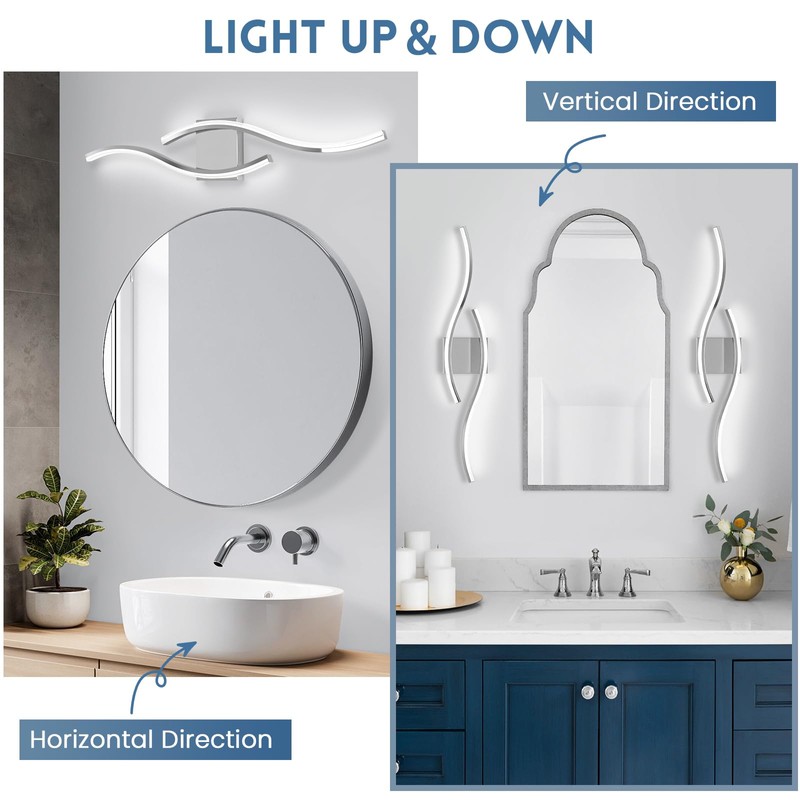 - Modern design: The bathroom vanity lights adopts a chrome double wave-shaped design concept, which is simple yet elegant.