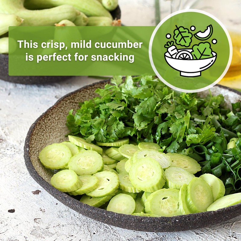 - Enjoy Fresh Cucumbers - Will produce long straight cucumbers if allowed to climb a trellis, whether outdoors, in a container, or under a greenhouse. Cucumbers are great in salads, mini English sandwiches, drinks or just eaten plain. This variety makes an unusual yet tasty option for pickles. Cucumbers are a must for many Japanese and Asian dishes.