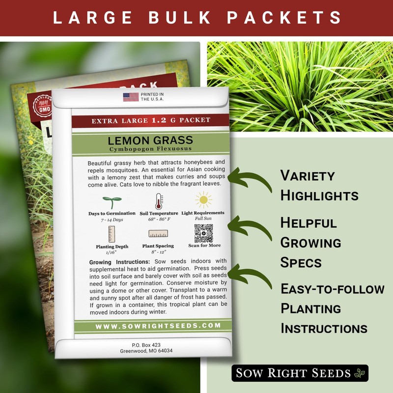 Sow Right Seeds Sow Right Seeds - Lemon Grass Seed for Planting - 1600 Seeds, 1.2 Grams, Non-GMO Heirloom Bulk Jumbo Pack with Instructions to Plant and Grow an Herb Garden - Grow Loads of This Culinary Herb