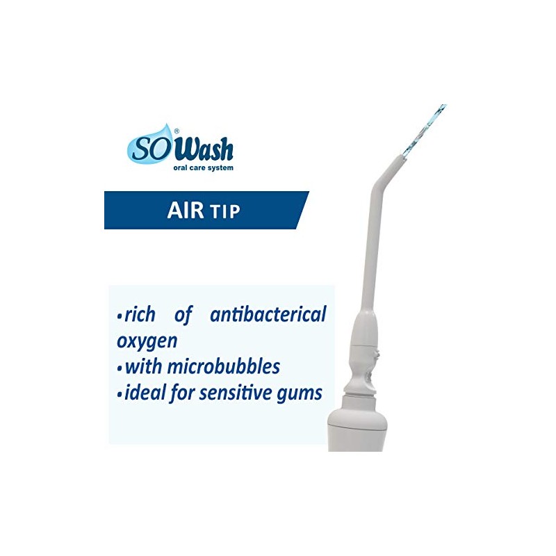 - ✅ The SoWash Air tip adds microbubbles of air to the water jet making the water jet more delicate and thus ideal even for sensitive gums, and, thanks to the oxygen contained in the bubbles, makes it possible to more effectively fight the bacteria responsible for plaque.