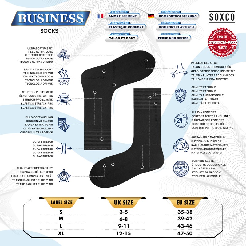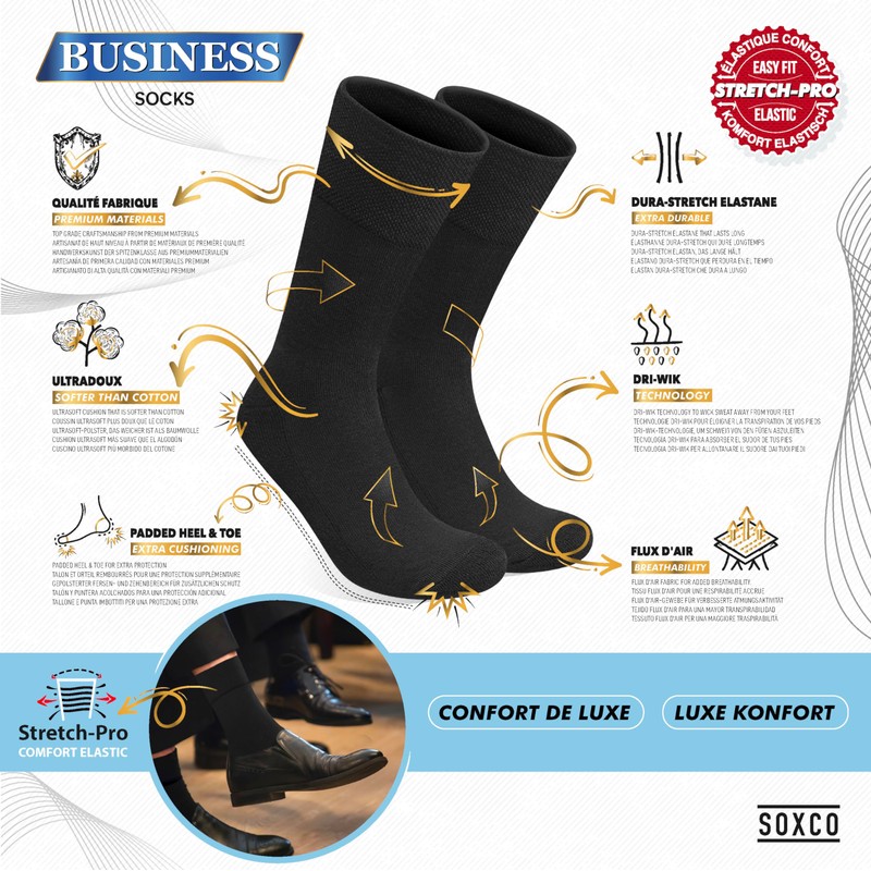 - DURABLE MATERIALS & CRAFTSMANSHIP: Crafted from long-lasting materials engineered to withstand wear and tear, these socks are designed for extended daily usage, ensuring enduring comfort and reliability. Soxco business socks offer both comfort and durability.