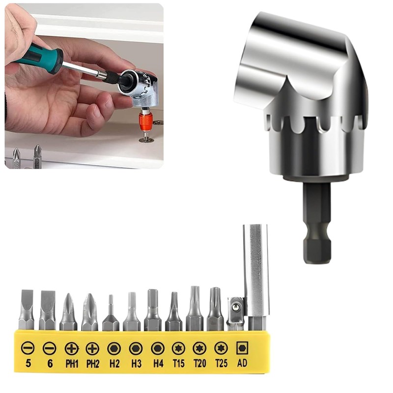 - 【105 Degree Angle Screwdriver Drill Bit】The included 105° angle screwdriver drill bit can be connected to the drill, rechargeable drill, or manual wrench. This extension bit extends your reach to inaccessible stenosis, making it perfect for twisting screws, nuts, and more.