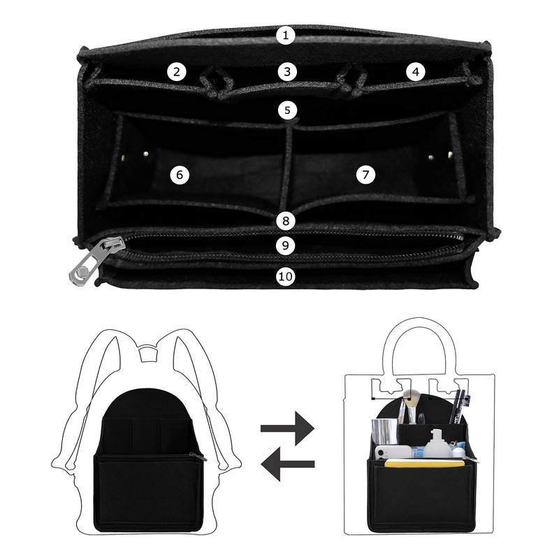 - PREMIUM MATERIAL: Soyizom mini backpack bag organiser insert is made of high quality felt.Lightweight&Durable, Neat stitches & Reinforced bindings effectively extend the service life of backpack organizer insert.