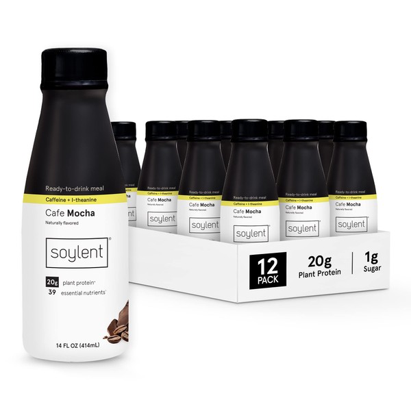 Soylent Complete Coffee Meal Replacement Shake, Cafe Mocha, Ready-to-Drink Plant Based Caffeinated Protein Drink, Contains 20g Vegan Protein and 1g Sugar, 14oz (12 Pack)