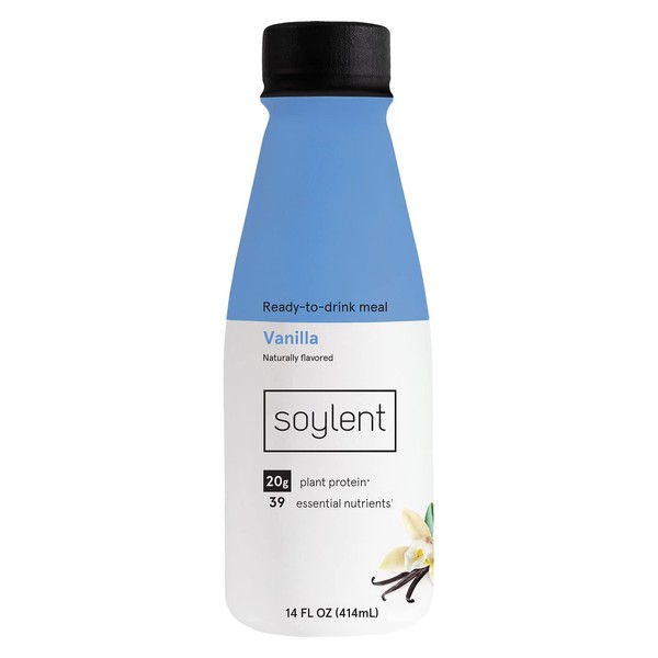 Soylent Complete Meal Replacement Shake, Vanilla, 20g complete protein, 28 vitamins & minerals, low sugar, 14oz (Single Bottle)
