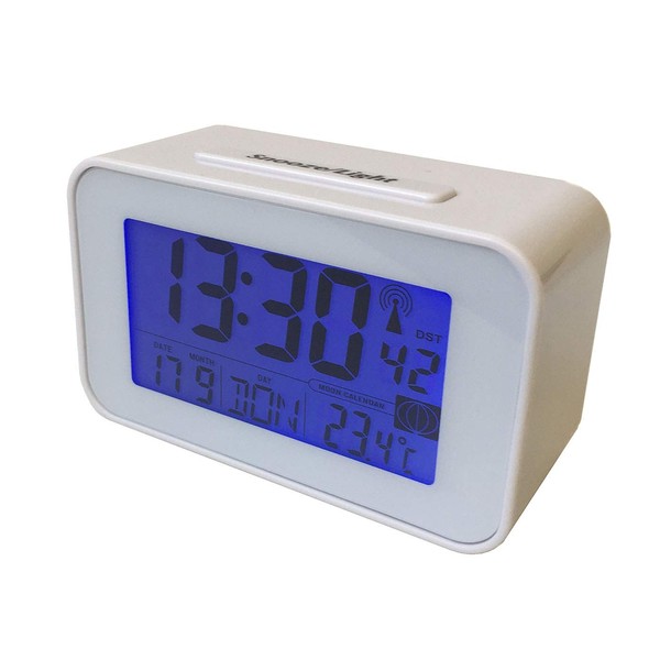 Soytich Radio Controlled Clock with Thermometer Radio Alarm Clock in White (SN4491 White)