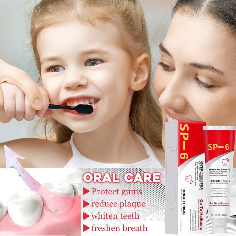 - Deep cleaning of teeth: SP-6 probiotic toothpaste can effectively clean teeth, remove food residue and stains and make your teeth white and shine. It can not only effectively brighten the skin, but also protect oral health comprehensively, making it an ideal choice for oral care.