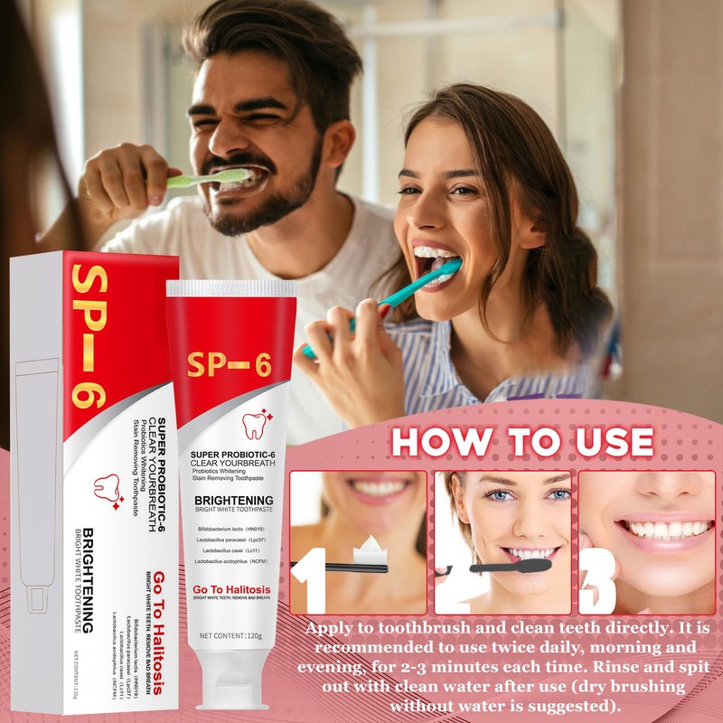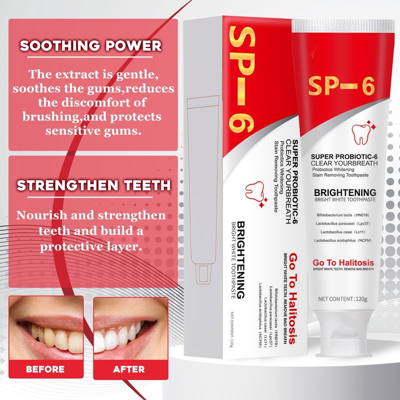 Sp-6 Toothpaste, Sp-6 Probiotic Toothpaste, Whitening Toothpaste, 120 g, Sp 6 Toothpaste, Probiotics Bright White Toothpaste, Teeth Whitening, Deep Cleaning Care Toothpaste
