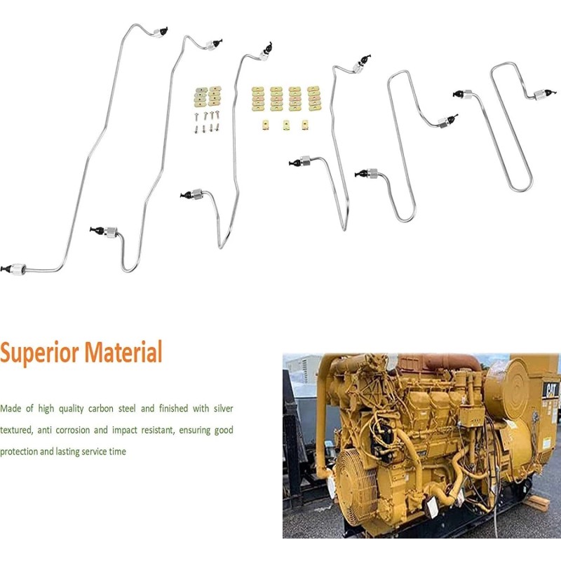 For Caterpillar CAT 3406 Fuel Injection Line Kit with Clamps 3406B 3406C 980G