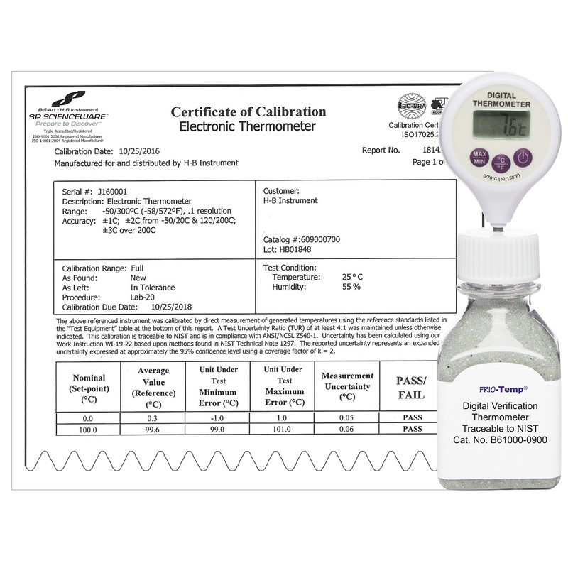 SP Bel-Art, H-B Frio-Temp Calibrated Electronic Verification Lollipop Stem Thermometer for Refrigerators, Incubators and General Applications; 0/70C (32/158F) (B61000-0900)