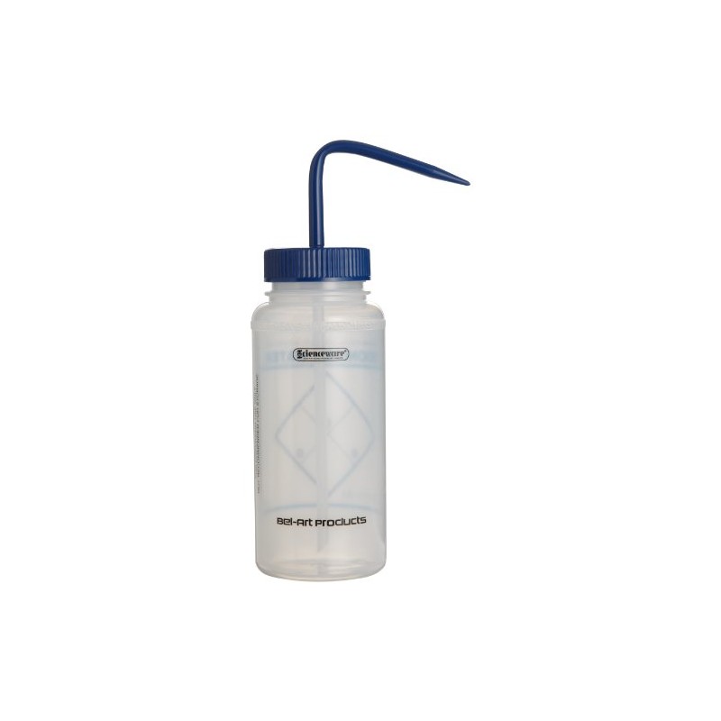 - Wide-mouth wash bottle used to wash labware and to store washing solutions, such as acetone or deionized water