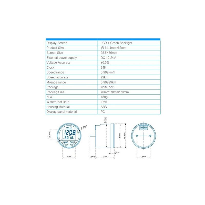 This unit has a GPS speedometer function, Clock function,Voltage indicator function and some other features.