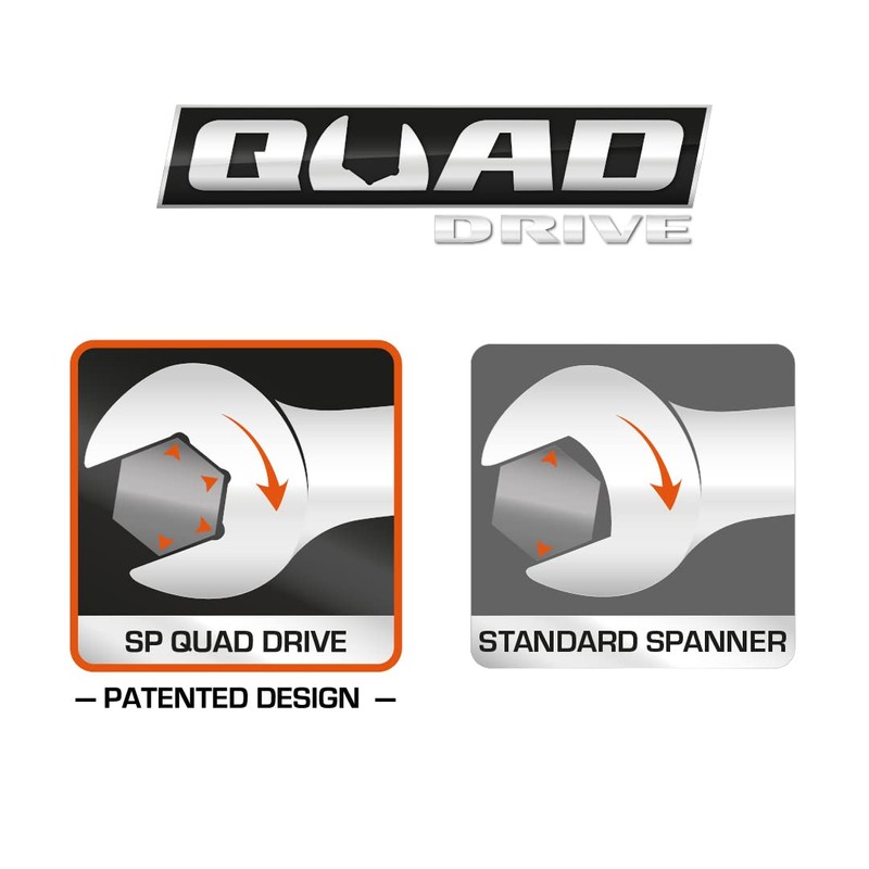 - The twisted patented Quad Drive Open Ending End provides 4 times the grip performance of a standard wrench by wrapping around fixing and maximizing contact on the flat sides of the fastener head.