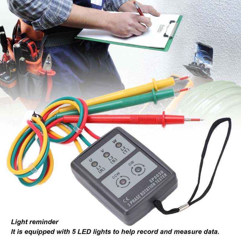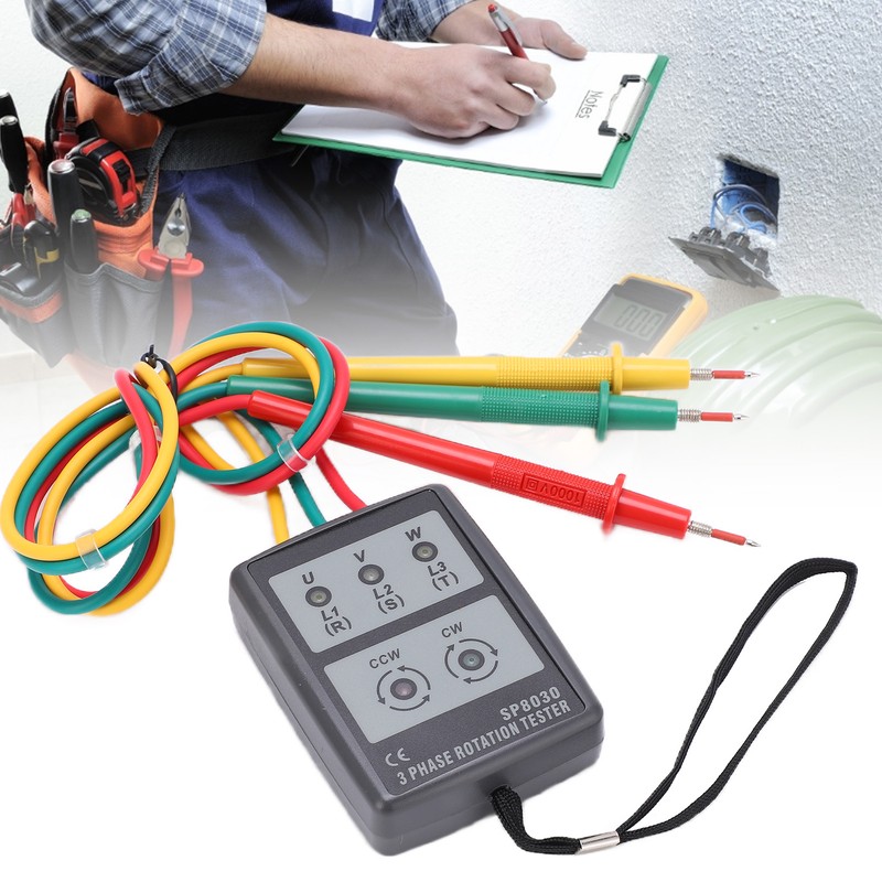 SP8030 3 Phase Sequence Rotation Meter Compact Handheld Battery Free Industrial Phase Rotation Tester