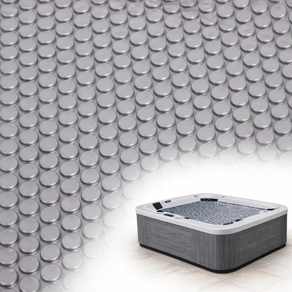 Hot Tub Bubble Blanket - 8 x 8 FT 16-Mil Square Pool Spa Solar Cover | Heavy Duty Floating Heat Retaining Thermal Blanket for Insulating Solar Heating (Gray)