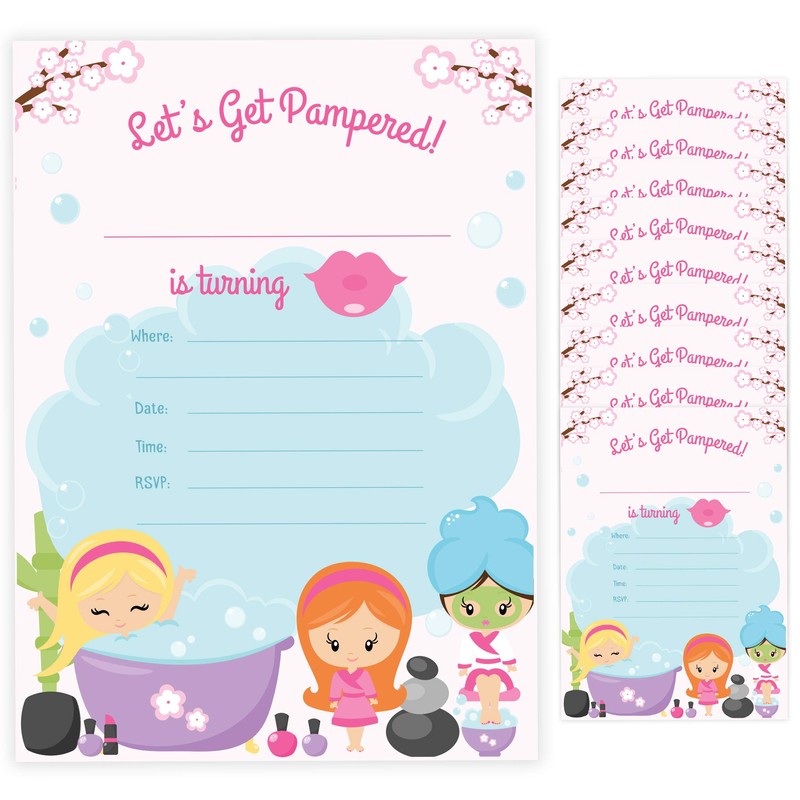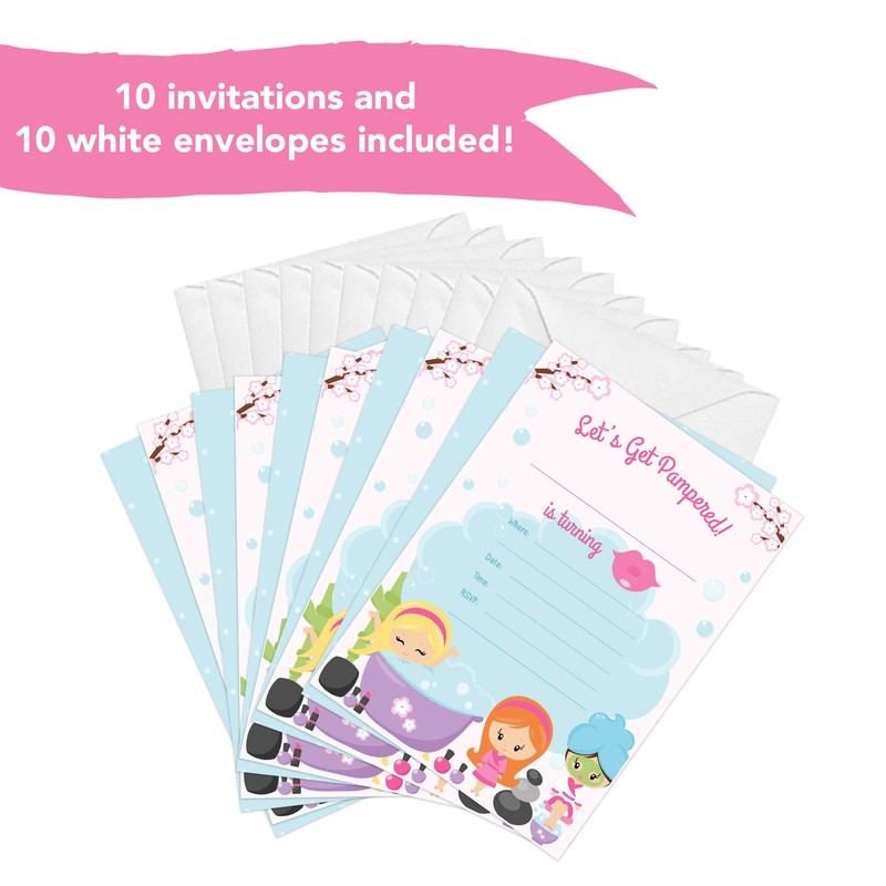 Spa Day Style 1 Happy Birthday Invitations Invite Cards (10 Count) With Envelopes Boys Girls Kids Party (10ct) by Desert Cactus Store