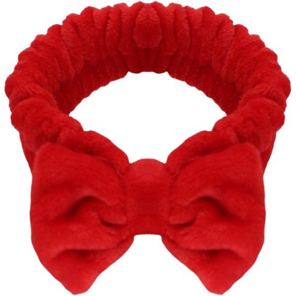 Spa headband, bowknot headband in Rose Red, reusable, soft and comfortable, preventing liquid from getting wet and disrupting hair (Red, One size)
