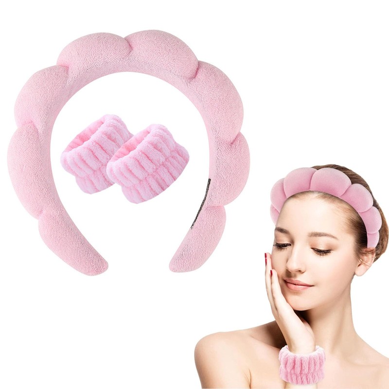Spa Headbands for Women,3 Pcs Makeup Headband and Wrist Washband Set Skincare Headbands,for Face Washing, Spa,Shower, Makeup Removal Hair Accessories(Pink)