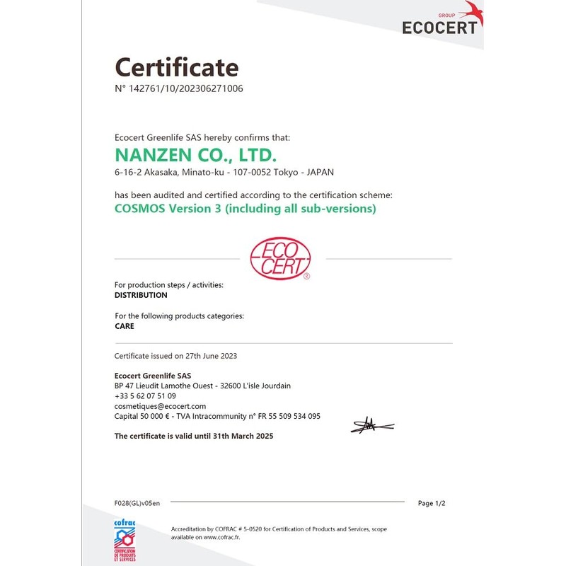 - This product has undergone the ECOCERT Standard and COSMOS Standard (Cosmos Standard) organic certification authority of the world standard. The COSMOS Standard is created to set the global standard for organic and natural cosmetics by the COSMOS-Standard AISBL, a new international NPO organization founded in Belgium by 5 organics certification organizations of ECOCERT, COSMEBIO (France), BDIH (Germany), ICEA (Italy), and SOIL ASSOCIATION (UK)