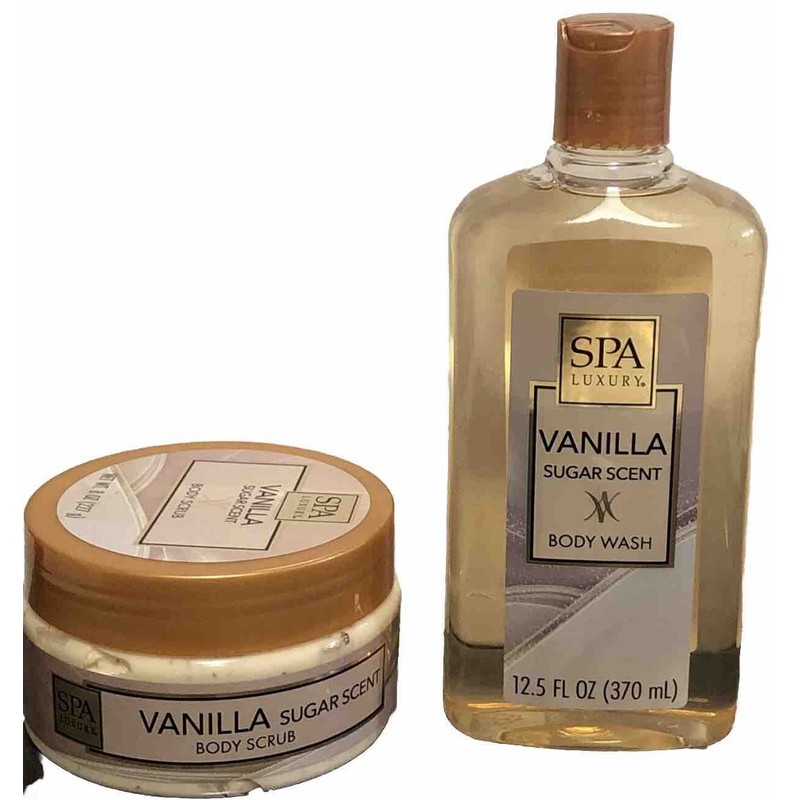SPA Luxury Vanilla Sugar Scent Body Wash 12.5fl/370ml & Body Scrub 8oz New.