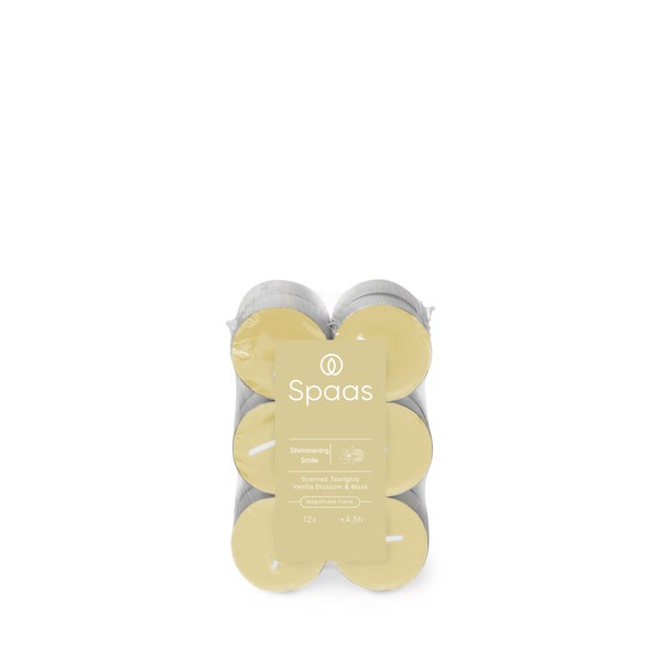 Spaas Scented Tealights flatpack x12 4.5h, Shimmering Smile, Beige