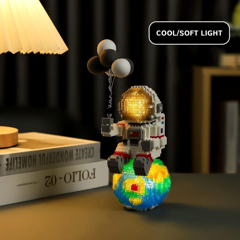 Space Astronaut Mini Building Set - Micro Blocks with LED Lighting Kit (1368 PCS) for Teens and Adults Ages 12 and Up - Nano Compatible Spaceman Earth Astronaut Mini Blocks Set DIY Bricks Toy