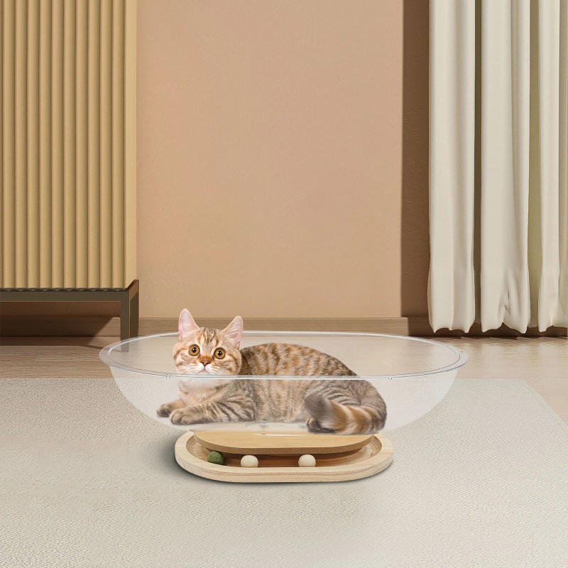 Space Capsule Cat Bed, Indoor Cats Bed Cat Nest With Track Balls Toy, Ellipse