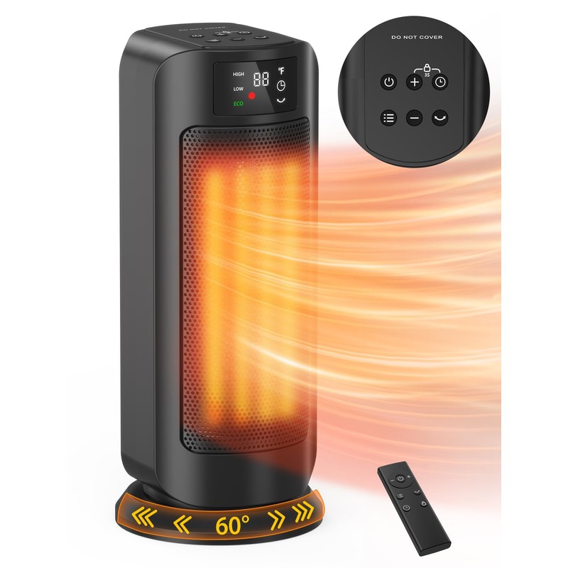 - 2S Fast Heating: Powerful 1500W PTC ceramic heating allows this space heater to heat up in seconds. Keeps the room comfortably warm at the temp you set. The heater oscillates quietly and rotates enough to move warm air across the room.