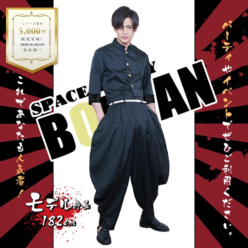 Space Hobby 11104241 Large Size School Run, Cosplay, Yankee, Men's, Costume, Short Run, Bontan School Uniform, Outerwear, Belt Included, Popular for You Also Great for Parties and Events, 2L Black