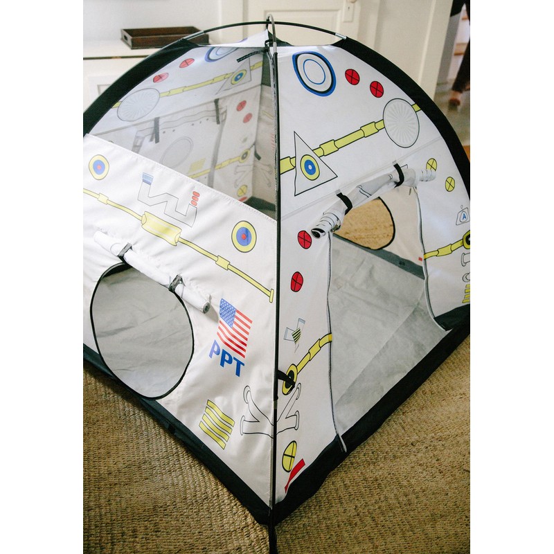 Pacific Play Tents Space Module Dome Tent takes your child's imagination to the moon, this dome tent is perfect for a backyard adventure or indoor fun on a rainy day. This tent has enough room for friends, toys and kid-sized furniture. Features a durable washable floor, mesh panels for ventilation and easy viewing. Our Super Poles are safety-coated to prevent splintering or shattering. Cleans easily with a damp cloth and mild soap. Includes carry bag.