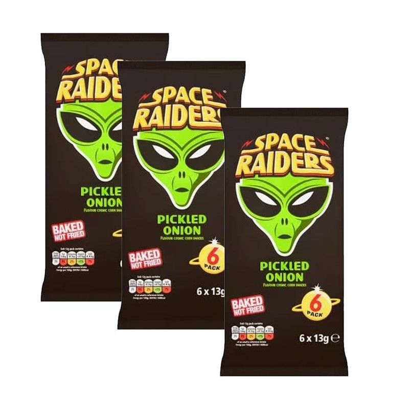 • CLASSIC SPACE RAIDERS CRISPS: Enjoy the legendary crunch and bold taste of Space Raiders Beef Crisps and Space Raiders Pickled Onion Crisps, a UK favourite snack loved for decades.