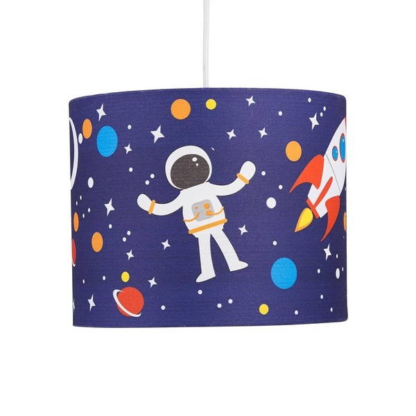 Space Rocket Design Easy Fit Light Shade, Blue Space Ceiling Light, Ceiling Lighting Boys Girls Bedroom, Nursery Lightshade