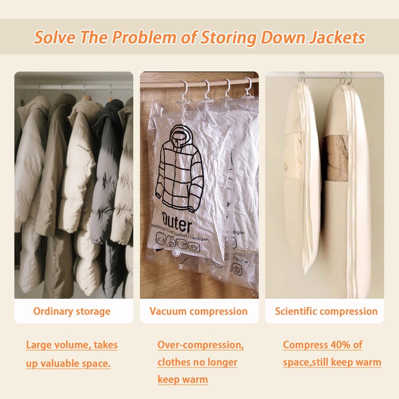 - Effortless Organization: Our Space Saving Hanging Garment Bag with Self Compression Zipper allows you to efficiently organize your wardrobe. Perfect for seasonal clothing storage, it keeps your winter coats and other garments neatly packed away, maximizing your closet space.