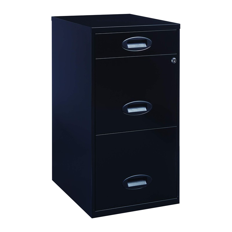 Space Solutions - 3 Drawer Fully Assembled Steel File Cabinet, Home & Small Office Use, Fits Under Most Desks, Letter-Size, Small Supply Drawer, Locking, Black