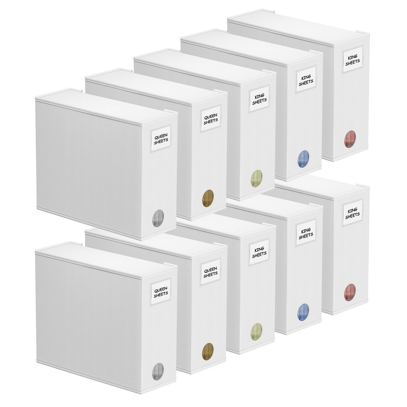 - LABEL CARDS INCLUDED - With the removable label on the bed sheet storage organizer keeper, you can identify the linen content instantly, which will save so much time