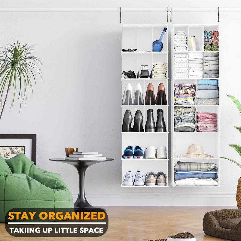 SpaceAid 2 Pack Hanging Closet Organizer and Storage with Dividers, 24 Compartments Hanging Shoe Shelves for Closet, Wardrobe, RV, Garment Rack - White