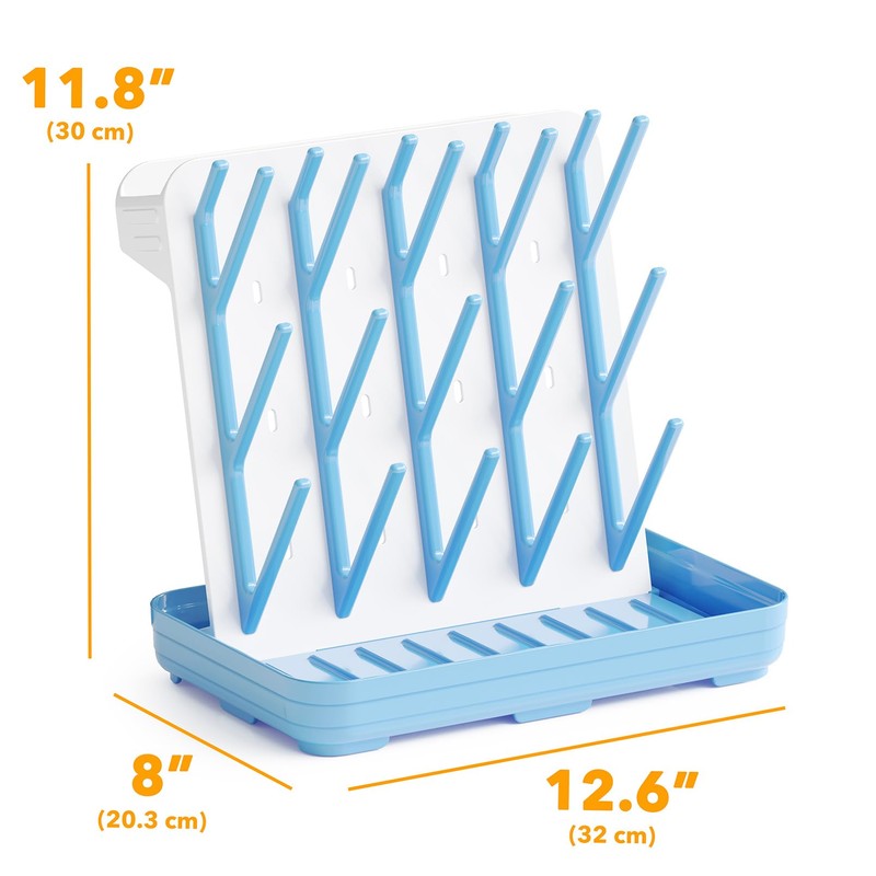 - ORGANIZED AND BEAUTIFUL - Keep your baby bottles tidy and orderly with this blue drying rack; Designed to accommodate different baby bottle sizes; SIZE: 12.6"W x 8"D x 11.8"H
