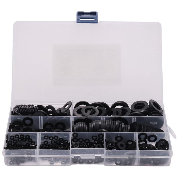 Spacesea 600Pcs Black Nylon Flat Washer Assortment Kit for M2 M2.5 M3 M5 M6 M8 M10 Plain Repair Washer Furniture Gasket Kit