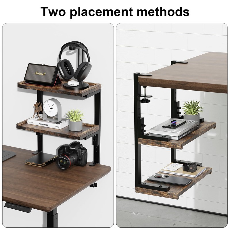 - 【Versatile Installation】: Our desktop organizer can be used upside down and can be easily placed anywhere above or below the desk. The height of the lower shelf is adjustable to maximize its function to meet your needs.