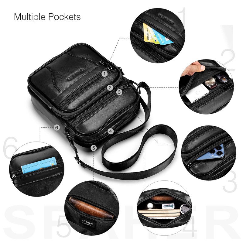 - Premium Genuine Leather Material: More thicker and durable, this leather men's bag is made by SPAHER customized premium quality pure genuine leather with perfect finishing and good smooth touching feeling, also durable and easy to clean.