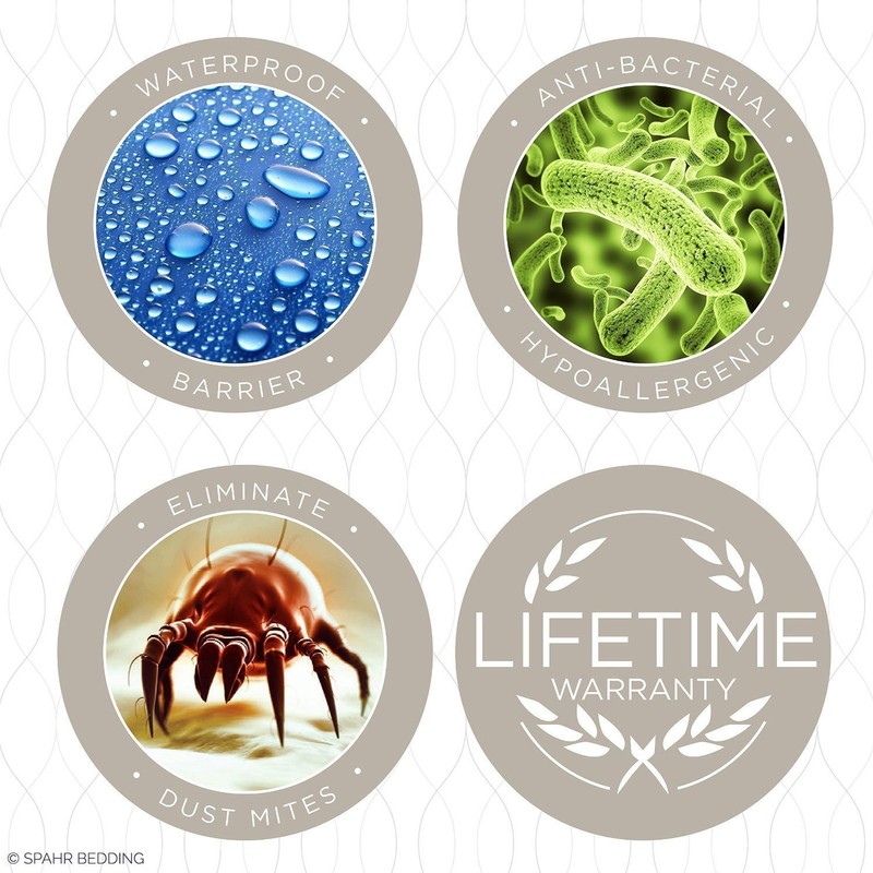 • KEEP OUT STAINS: Six-sided waterproof encasement locks out bodily fluids, spills, urine.
