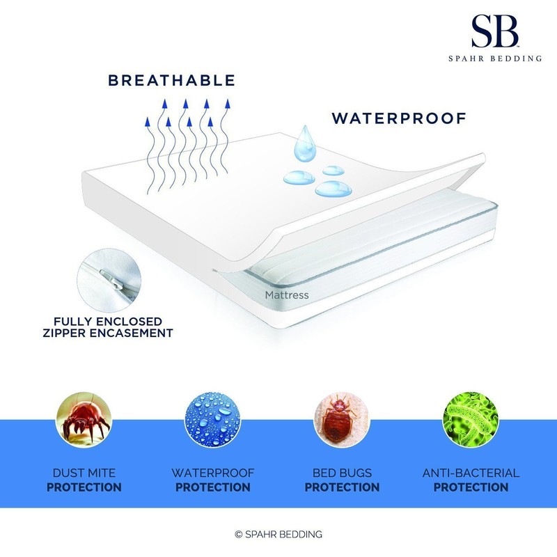 Spahr Bedding 6 Sided Mattress Cover - Zippered Encasement Mattress Protector- 100% Waterproof, Safe, Complete, Breathable Protection - Twin XL Size