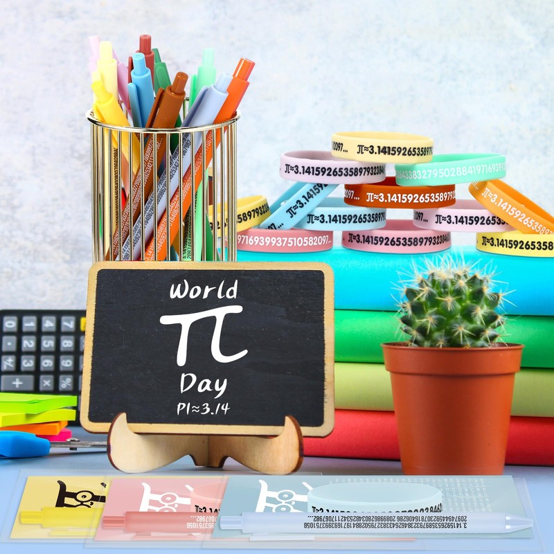 - Ideal Learning Accessories: each Pi symbol pen, card and bookmark is designed with the Pi symbol and the irrational number Pi (3.141592653589793238462643383279502884197169399375105820974) It is an ideal tool to enhance the fun of learning and a powerful symbol of wisdom and love for numbers; These Pi math silicone wristbands are more than just accessories; They greatly stimulate students' curiosity and interest in mathematics, turning mathematics from a boring subject into an exciting adventure