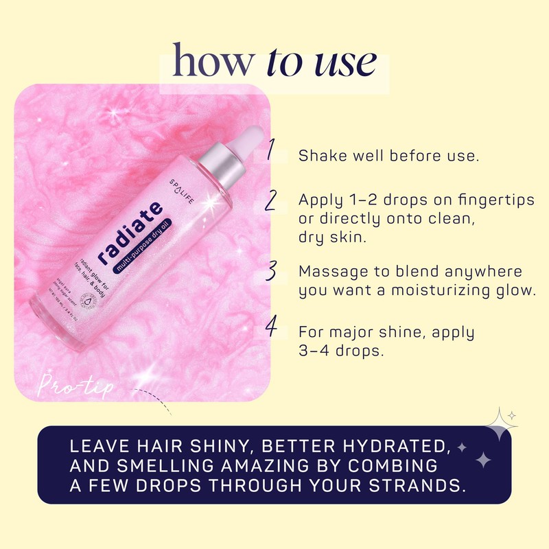 - Fast-Absorbing Formula: Lightweight and non-sticky dry oil absorbs quickly for radiant skin that lasts all day. No residue, just radiance.