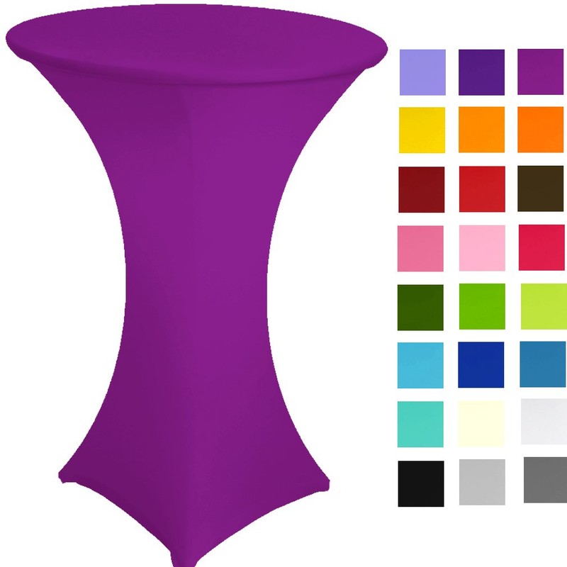 - MODERN AND SLEEK DESIGN. large choice of 25 colors to choose from to match your colour theme and decoration .Tight fit design spandex tablecloth for poseur tables with a 4 legs base ; 55-65 cm diameter and 100-120 cm height . great affordable event prop for display tables , bars, name card table , buffets , sweet stations and so on .