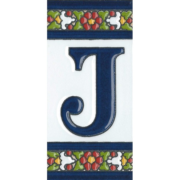 Spanish Floral Designed Ceramic Letter Tiles House Number Tiles and Frames (Letter J)